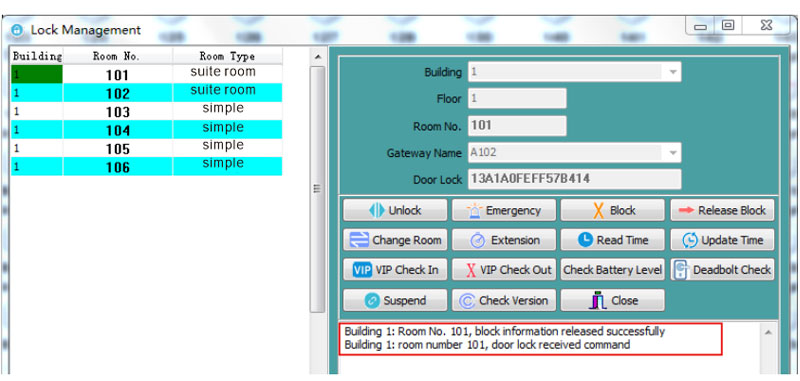 Select from the left pane the room to be operated, such as Room 101, and click the "Block" button as below.